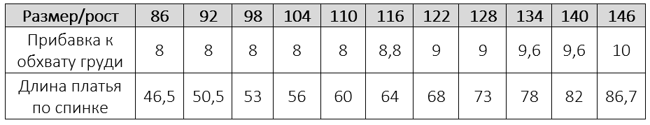 Рост 118,5 см, ОГ 57, ОТ 51, ОБ 63,5, платье сшито по выкройке на размер 122.
